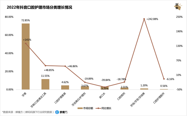 2022年抖音口腔护理市场分类增长情况